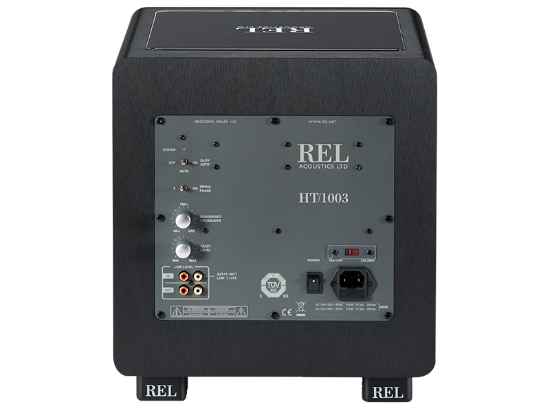 Subwoofer amplificato serie Home Theater in sospensione pneumatica. Woofer frontale da 25cm in fibra di carbonio a lunga escursione. Potenza 300W con amplificazione NextGen5 in classe D. Regolazione del volume e della frequenza di taglio del xover. Fase 0-180°. Possibilità di renderlo wireless attraverso l'adattatore esterno opzionale HT Air Wireless. Ingressi stereo RCA e LFE RCA separato. Dimensioni del cabinet (LxAxP): 31,8x34,7x35,1cm.